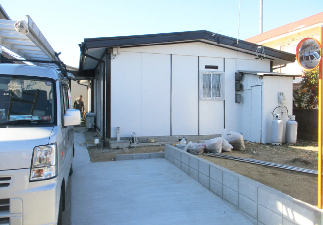 前回、駐車場スペースの拡張などを施工させていただいたお客様です。今空き家状態になっていて、キレイにしておきたいとの事で外壁塗装を頼まれました。